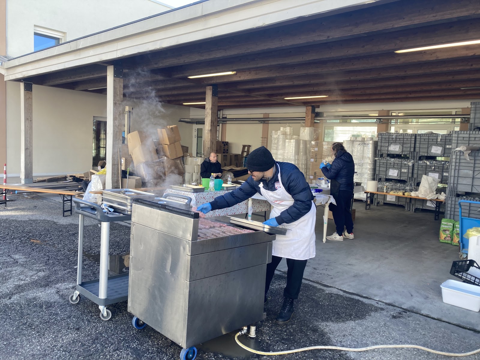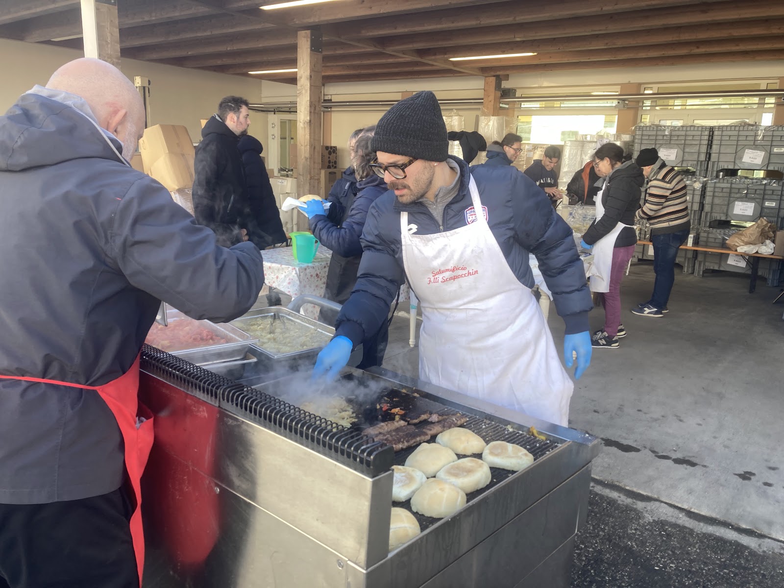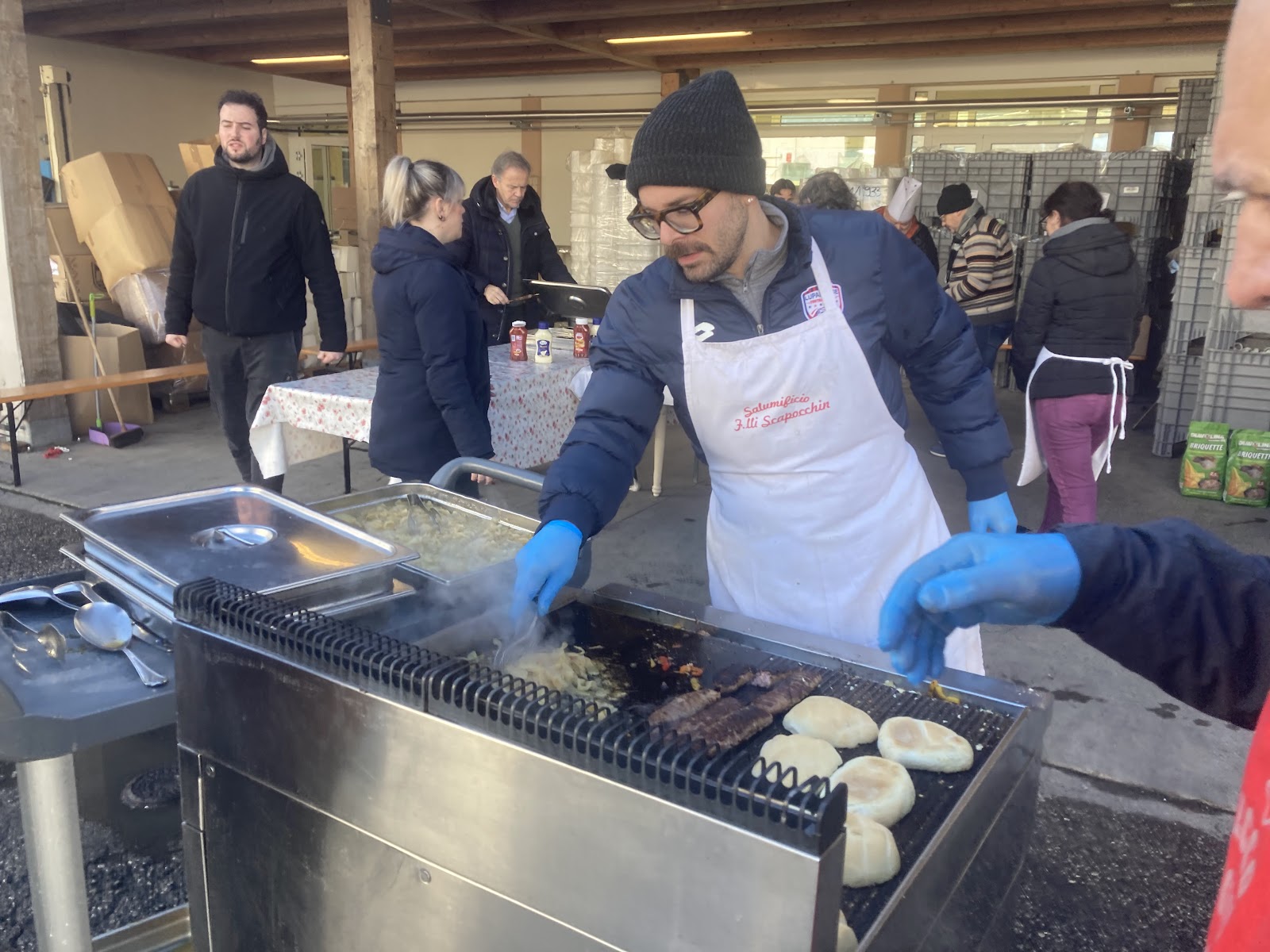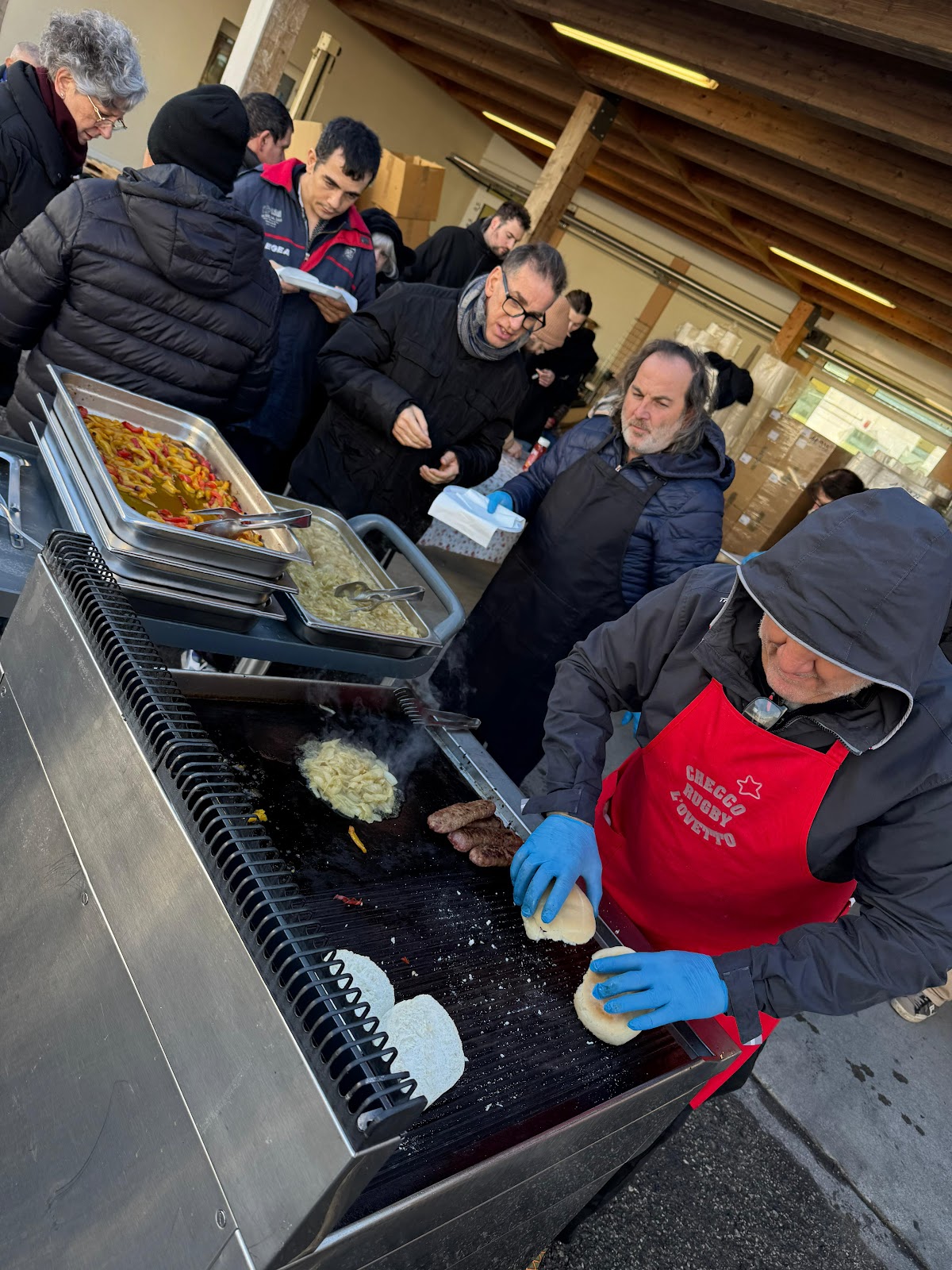 Un menù inedito, cotto all’aperto, approfittando di una fredda giornata di sole invernale, sotto gli occhi dei nostri ospiti, rifocillati per l’occasione con gli arrosticini per ingannare il tempo e scaldare le membra.