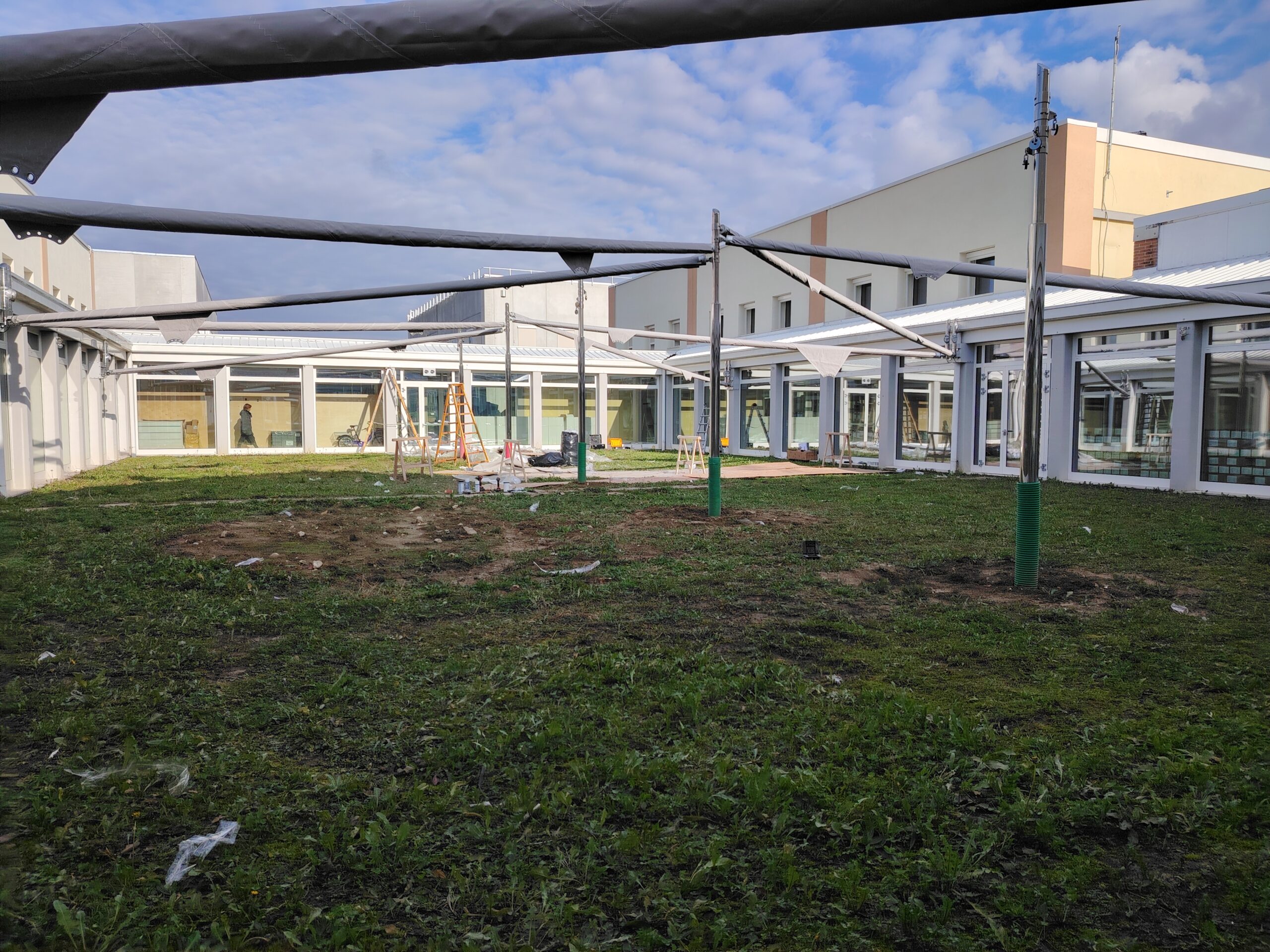 In questo momento al centro del chiostro ci sono 5 pali di acciaio inox di supporto, le tende sono state installate (e collaudate) e un giorno il chiostro avrà il suo pavimento. Godiamoci quindi quanto il 110% ci ha lasciato e diamoci da fare per finire l’opera. Avremo un Centro Paolo VI più completo, più capiente e sempre più capace di essere la casa dei nostri duecento e passa utenti.