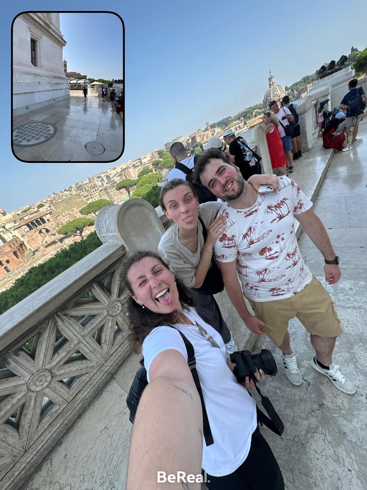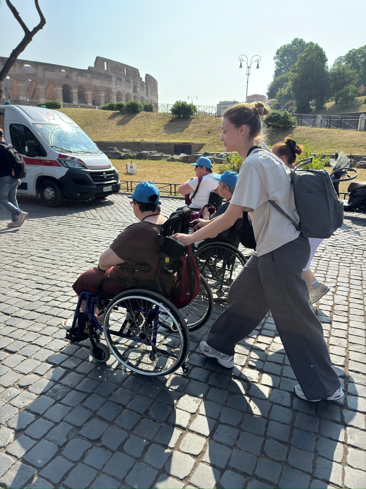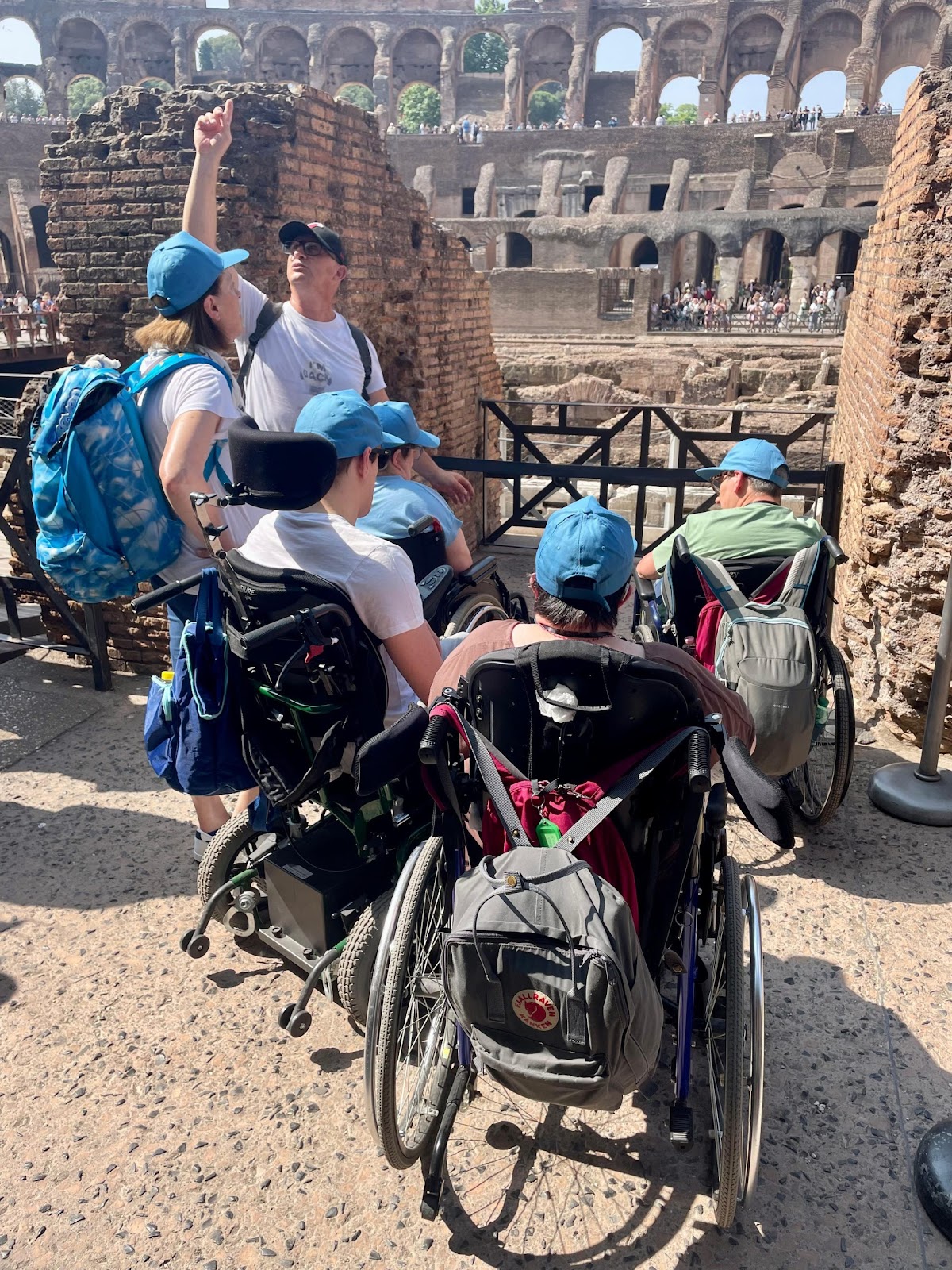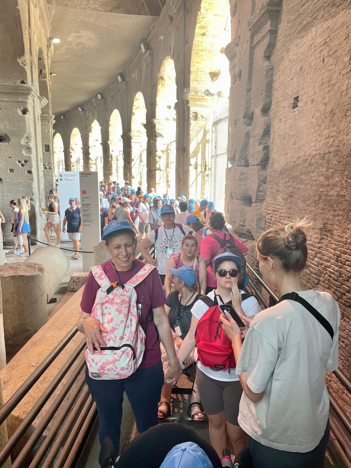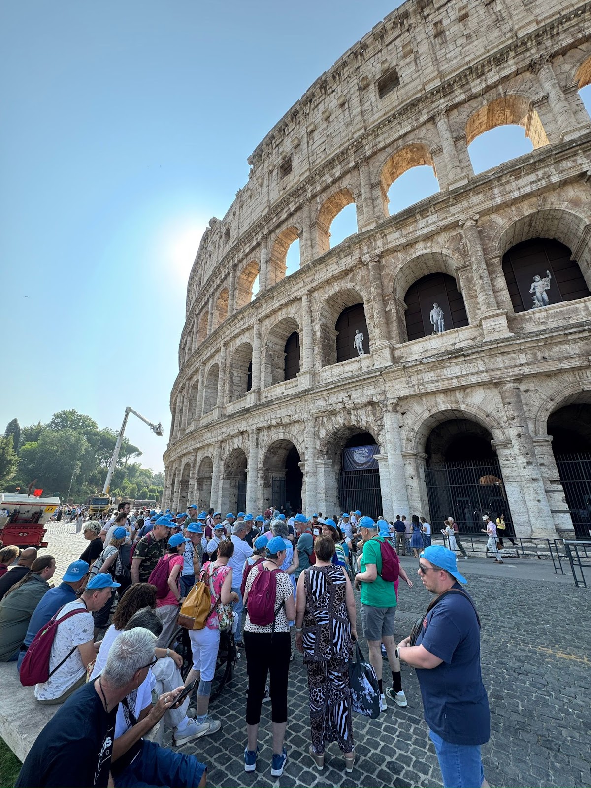 Gruppo di pellegrini del Centro Paolo VI in visita ai monumenti di Roma: Piazza del Popolo, Piazza di Spagna, Piazza Venezia e Colosseo, durante una giornata di sole nella capitale. Momenti di condivisione, cultura e spiritualità prima del rientro.