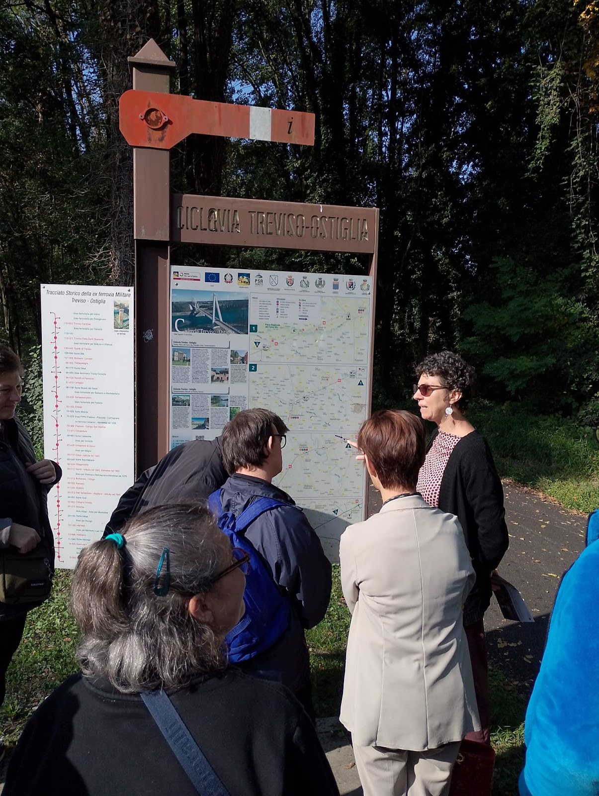 Alla presenza di Maria Claudia e Davide – rispettivamente responsabili della comunicazione e della manutenzione della Ciclovia Treviso-Ostiglia – hanno appreso un sacco di notizie storico-ambientali sull’ex ferrovia militare, lungo la quale da anni essi camminano, chiacchierano e passano proficuamente parte del loro tempo libero.