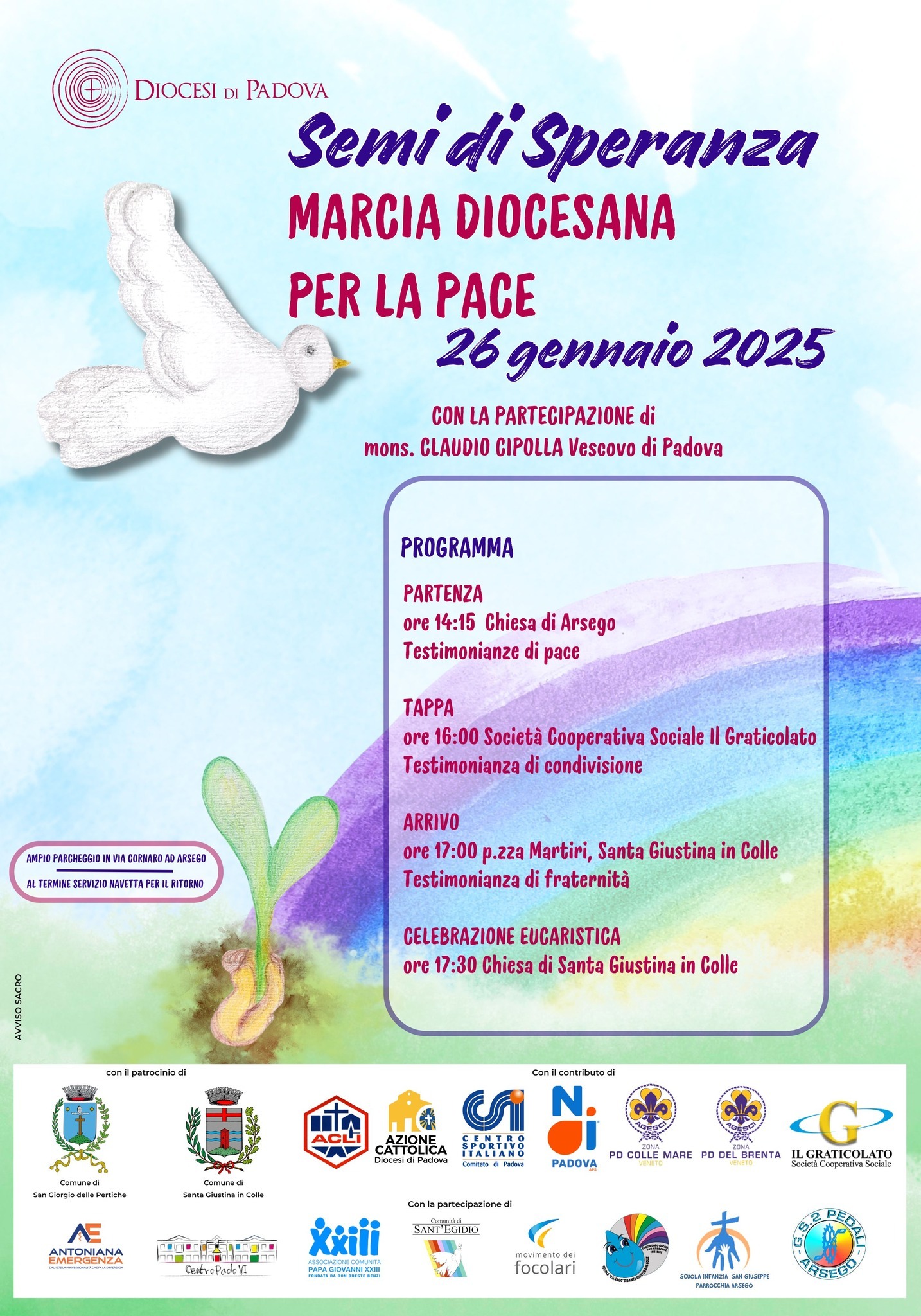La Marcia Diocesana per la Pace 2025 rappresenta un’importante occasione di raccoglimento spirituale e riflessione. Quest’anno partirà da Arsego di San Giorgio delle Pertiche (PD) e si concluderà a Santa Giustina in Colle (PD). Questo evento, promosso dalla diocesi per sensibilizzare alla pace e alla giustizia sociale, avrà una tappa centrale presso il Centro Paolo VI, una scelta simbolica e significativa.